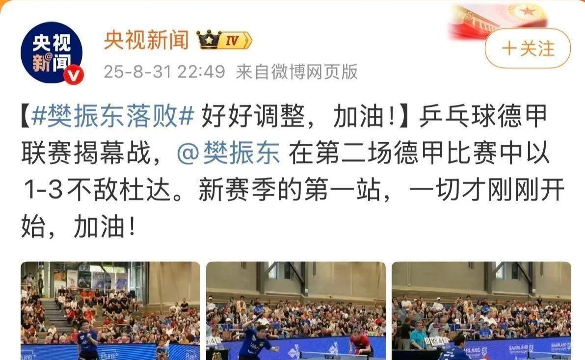 央视新闻在赛后第一时间发文力挺:“一切才刚刚开始! 好好调整,加油! ”这一表态被广泛解读为对过度批评的降温。 萨尔布吕肯队友们也集体表达支持,队长弗朗西斯卡称“樊振东很乐观,已在琢磨改进”,并暖心安慰“兄弟,把头抬起来! ”