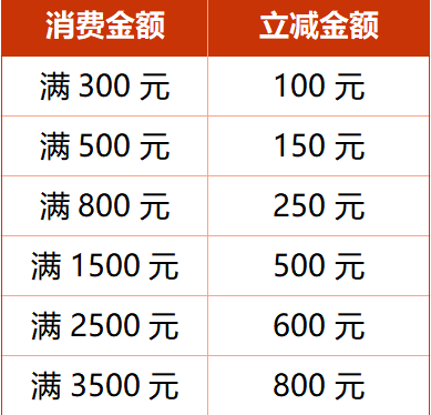 券面设四种满减面额,满300减90元、满500减150元、满1000减300元,满1500减450元,换算折扣为七折。后续视情调整。
